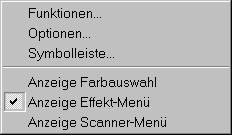 im Menü Einstellungen die Anzeige des Effekt-Menüs ein.