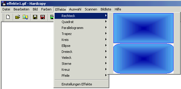 Im Hardcopy Menü wird Ihnen dann das Menü Effekte zur Verfügung gestellt.